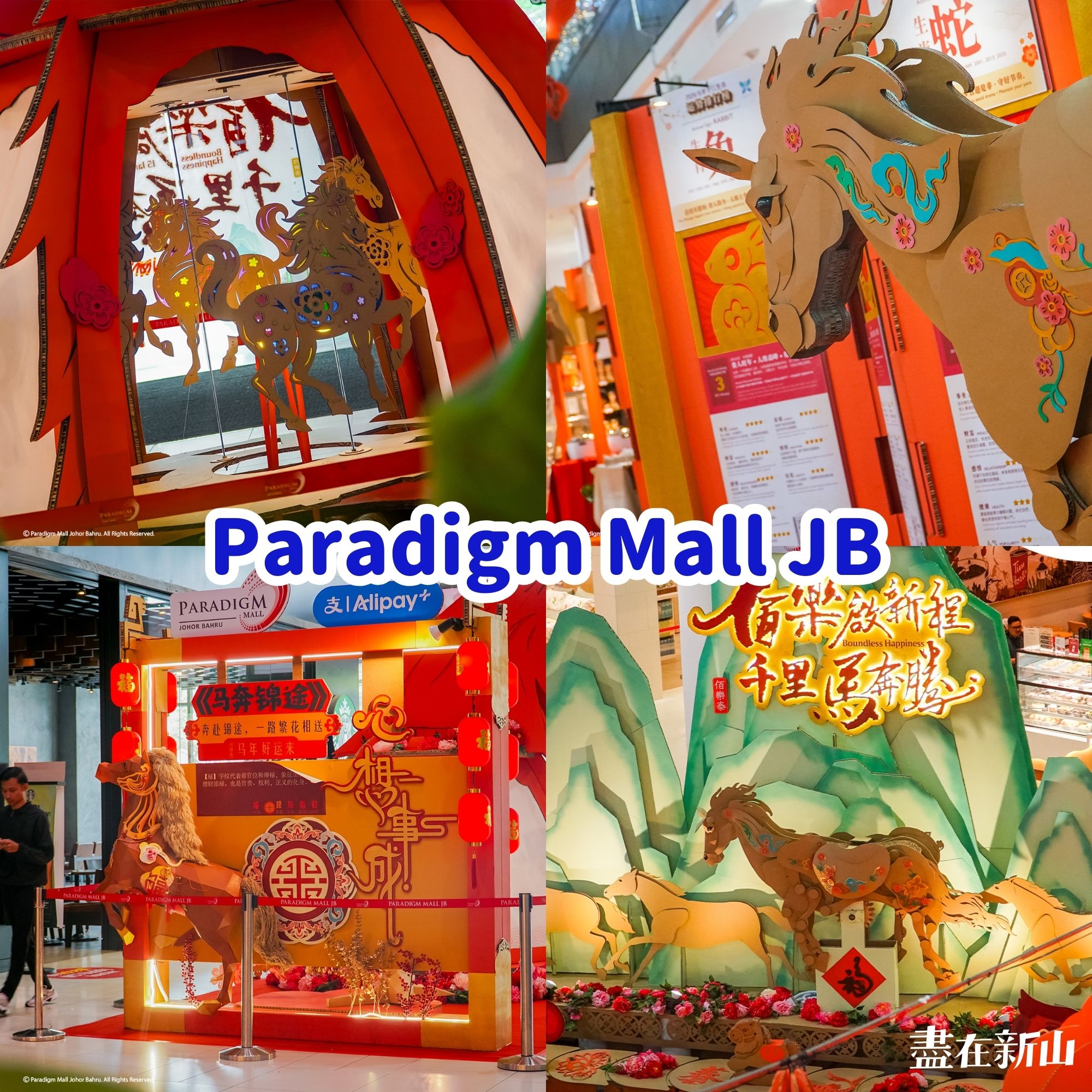 「Paradigm Mall Johor Bahru」以《佰乐启新程 · 千里马奔腾》打造独具特色的新春装饰,巧妙结合环保与永续理念。商场内的马年主题布置全部以纸材精心制作,无论大小,每一匹马都呈现出细致工艺与创意设计,赋予传统节日全新的视觉体验。走在商场中,红金喜庆的元素与环保马儿交相辉映,营造出既热闹又有温度的年味空间。