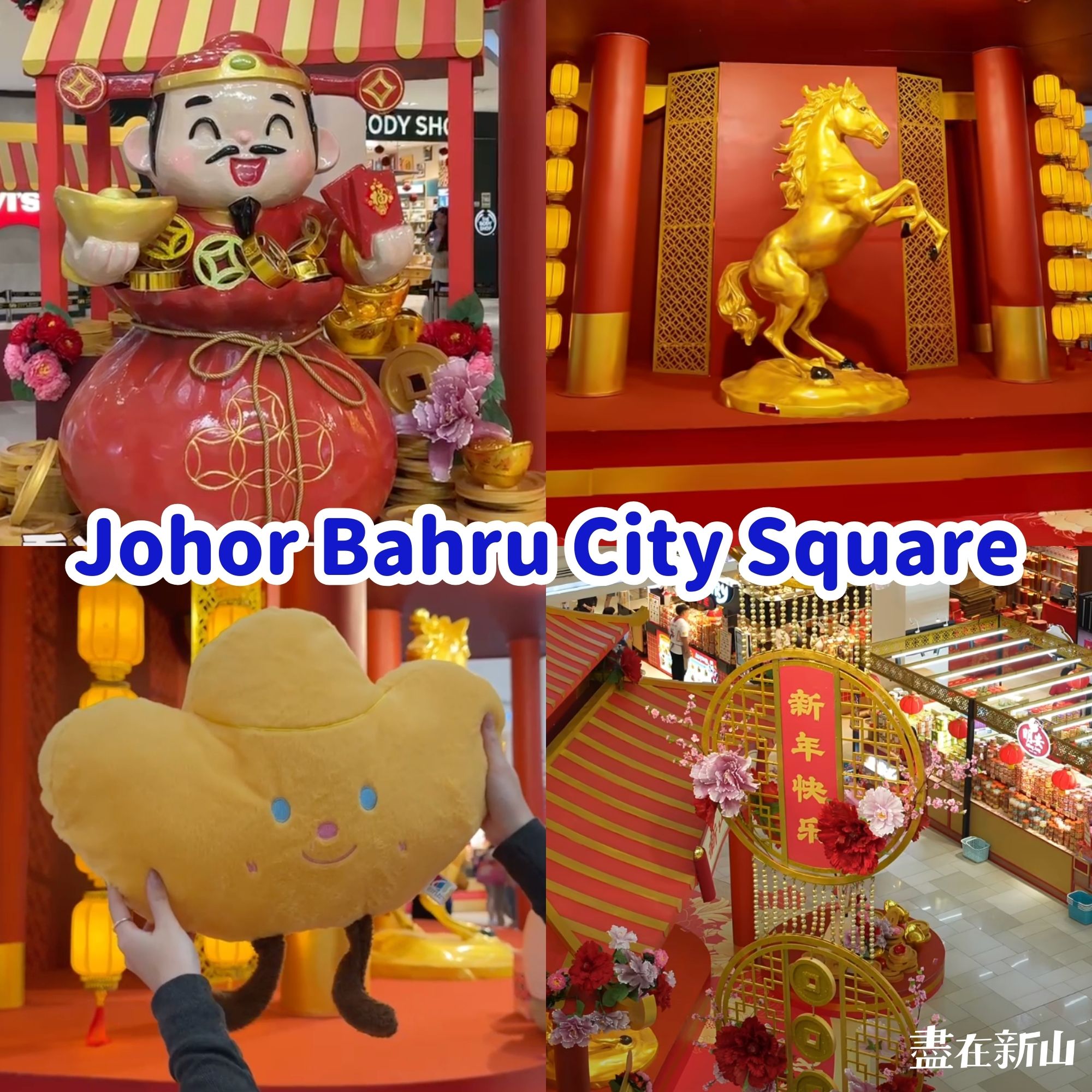 「Johor Bahru City Square」以《福馬迎春》为主题,将商场装点得喜庆又可爱。入口处的财神爷造型与金色骏马布置相映成趣,每个角落都散发浓浓年味,让人一走进商场就能感受到新年的热闹与欢乐。红金色彩的灯饰、春联与各式节日装置巧妙融合,营造出既温暖又活泼的过年氛围。