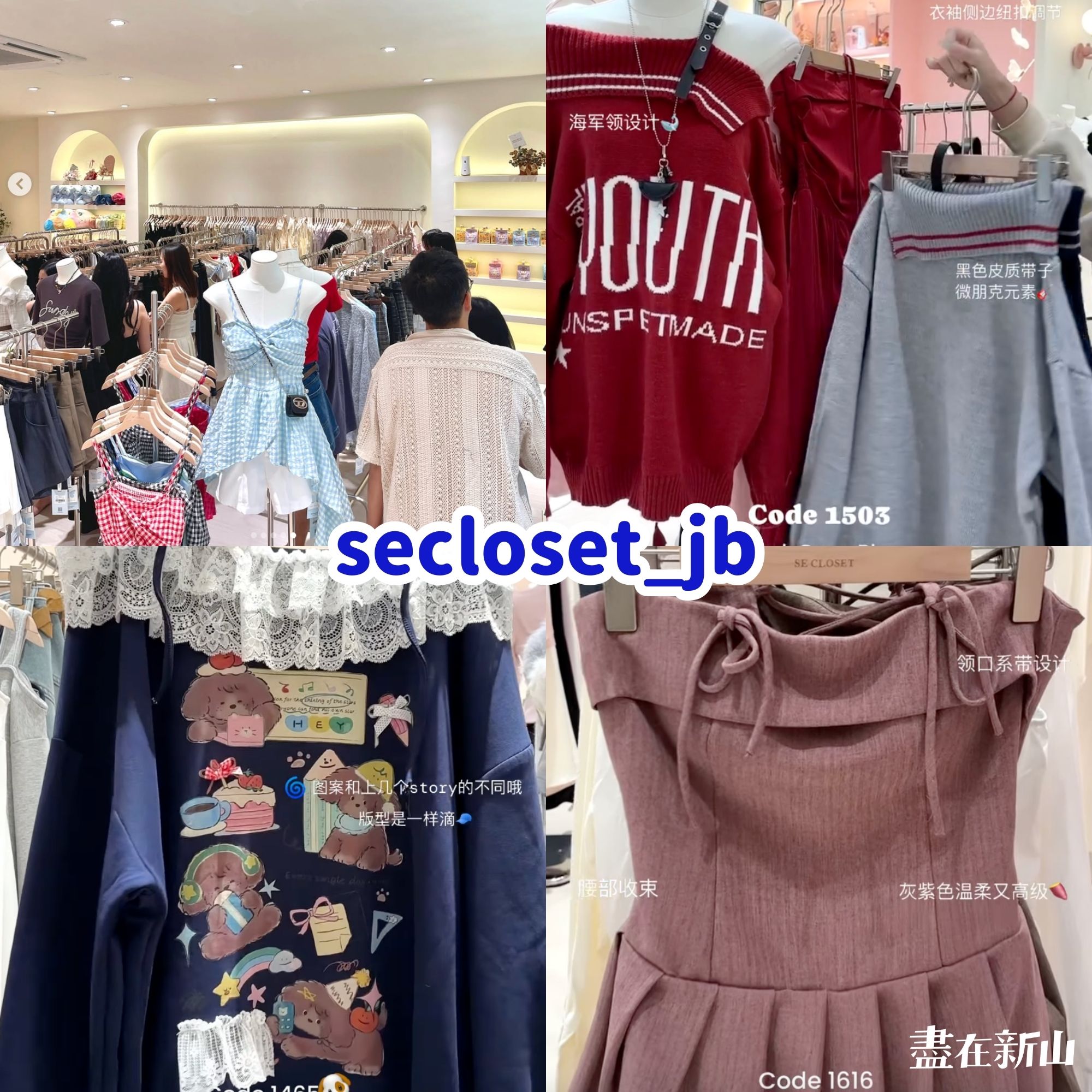 「secloset_jb」的衣服整体偏少女感、年轻风格,款式多样又好搭配。不管是上课日常穿搭,还是约会、出街都很合适。无论是经典的格子系列、百搭的T恤,还是舒适的长袖衣,都设计得很用心,既时尚又带有清新感,让人轻松打造甜美又有活力的日常造型。